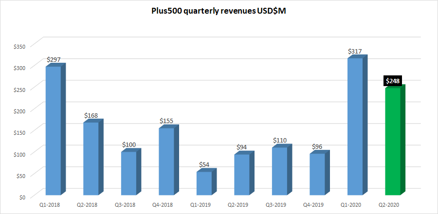 The European regulator actions played havoc with the financials of Retail FX and CFD brokers across the continent, causing a sharp decline in revenues and profitability. An excellent example of that is Plus500, which relies heavily on CFD revenue from UK and European customers. Plus500 saw Revenues decline by more than 50% in the quarters which followed the August 2018 regulator action (although Revenues more than recovered in 2020, as a result of COVID-19 related volatility):