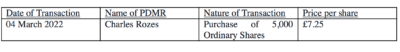 Charles Rozes, Chief Financial Officer of the Group, bought 5,000 shares in IG at a price of £7.25 per share. The date of the transaction is Match 4, 2022.