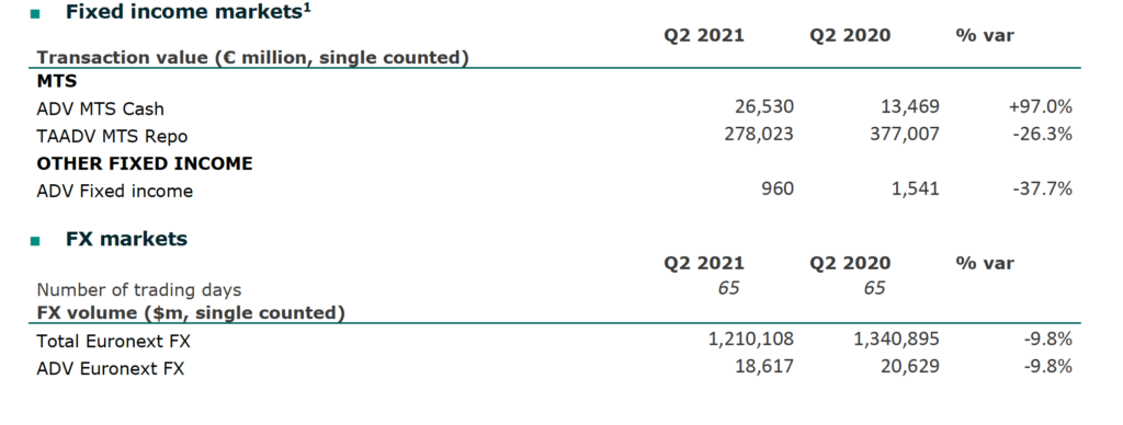 Euronext NV (EPA:ENX) today posted its results for the second quarter of 2021, with FX trading revenue lower than a year earlier.