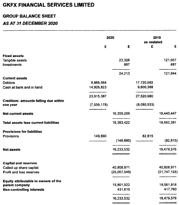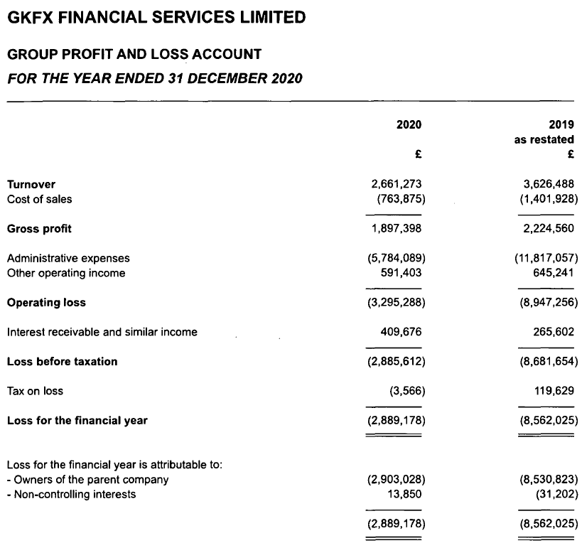 GKFX UK’s 2020 income statement and balance sheet follow: