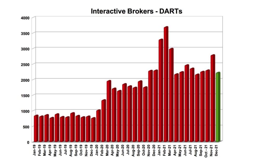 Interactive Brokers registers 20% M/M drop in DARTs in Dec 2021