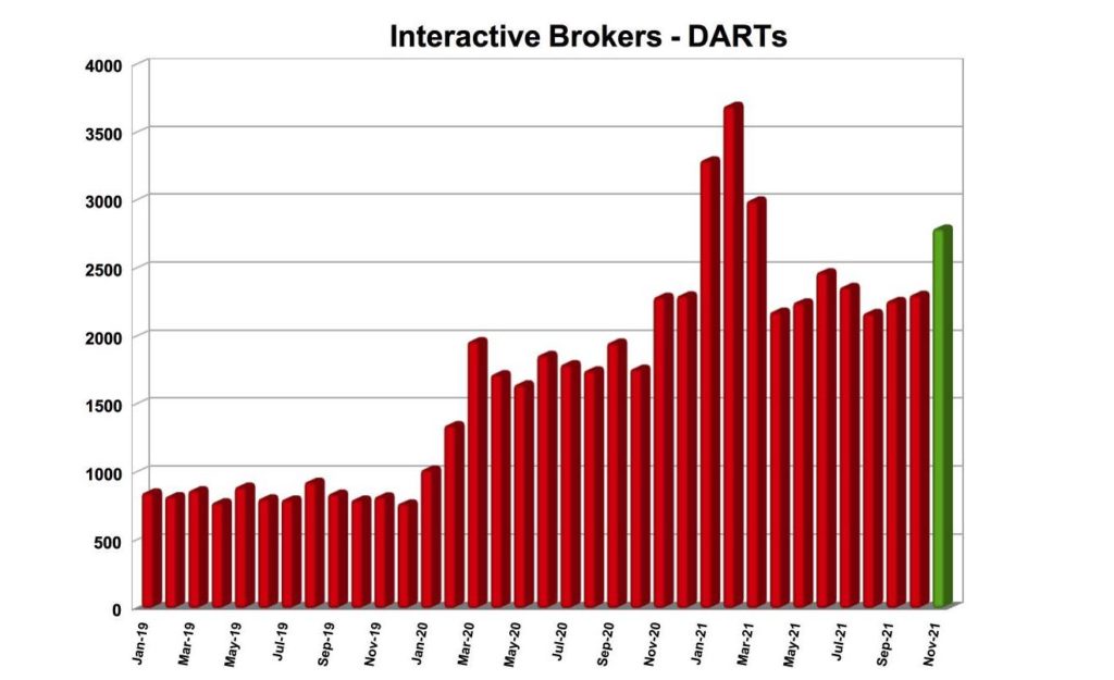 Online trading major Interactive Brokers Group, Inc. (NASDAQ:IBKR) has just posted its key performance metrics for November 2021.