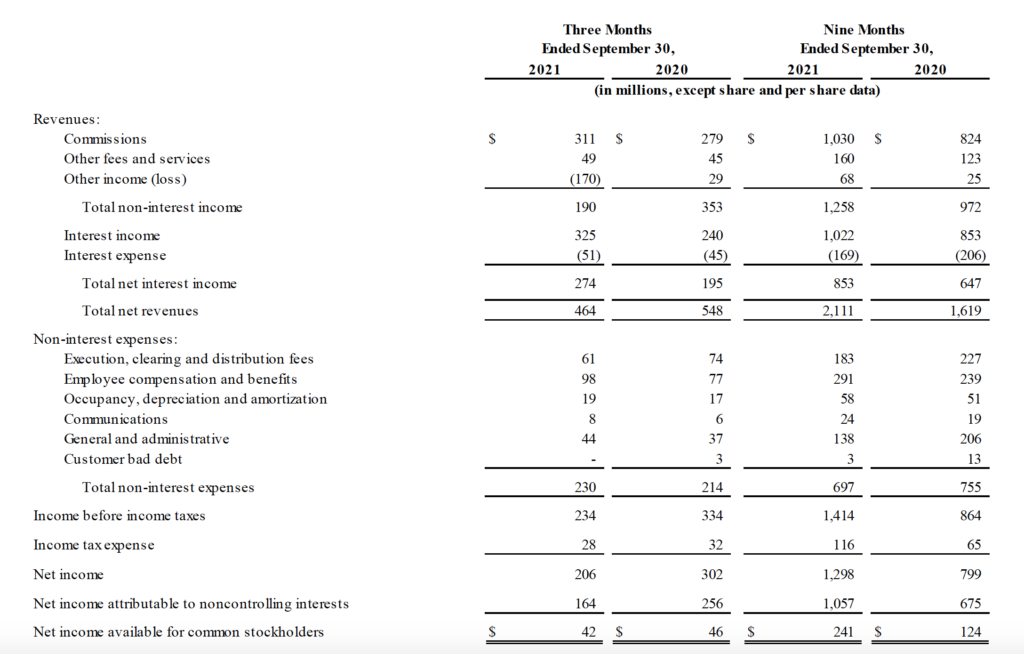 The broker reported diluted earnings per share of $0.43 for the quarter ended September 30, 2021 compared to $0.58 for the equivalent period in 2020, and adjusted diluted earnings per share of $0.78 for this quarter compared to $0.53 for the year-ago quarter.