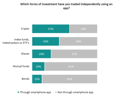 Cryptos are the most frequently traded instruments using an app. Six out of ten (57%) non advised investors who hold cryptos in addition to their investments have traded these instruments using an app.