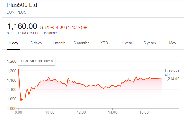 However it appears as though Plus500 was not hedging its client book, leading to the large loss for the company in early June.