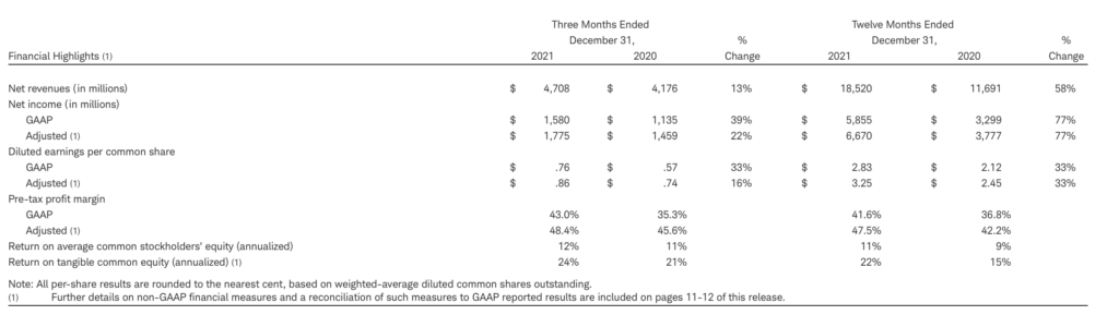 Net income for the fourth quarter of 2021 was a record $1.6 billion compared with $1.5 billion for the third quarter of 2021, and $1.1 billion for the fourth quarter of 2020. Net income for the twelve months ended December 31, 2021 was a record $5.9 billion, compared with $3.3 billion for the year-earlier period.