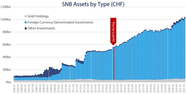 In the intervening period, the Swiss Franc has appreciated in value, and there are market rumours that the SNB is looking to maintain EUR/CHF at a rate above 1.05; the implication of this is effectively that there is an implied peg at 1.05. This theory is somewhat supported by the investment activity of the SNB.