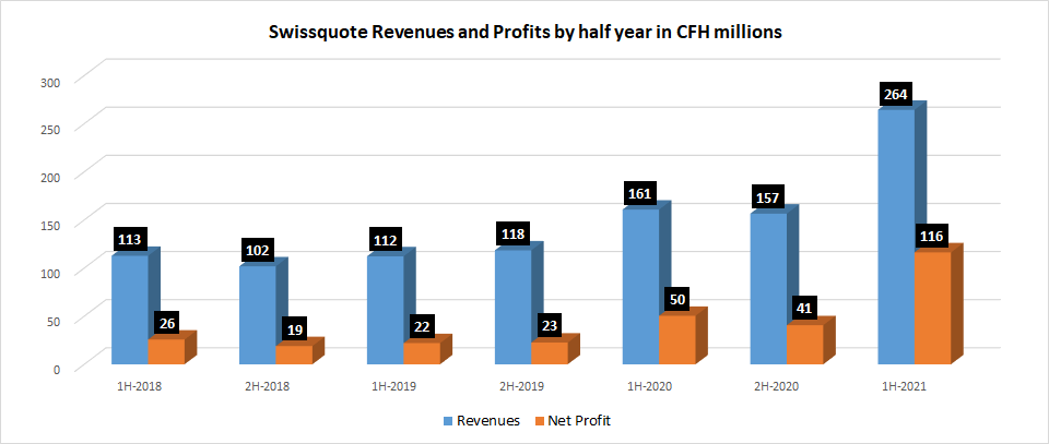 After pre-announcing in mid June that it was going to have a record first half on both the top and bottom line, Switzerland online broker Swissquote released its actual results confirming its earlier announcement.